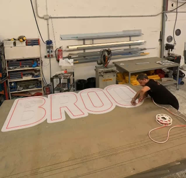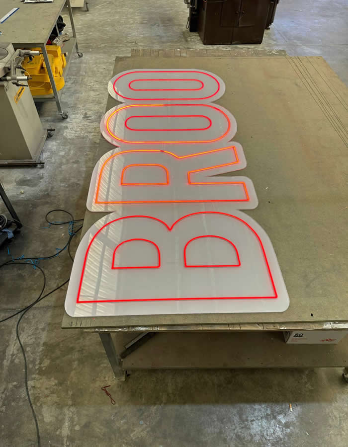 Lona rotulada en vinilo translucido de corte, para rotulo luminoso.